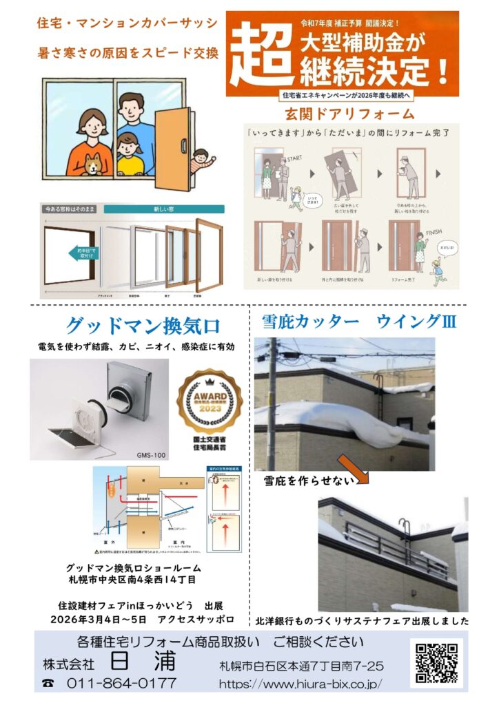 また、2026年3月4日~5日にアクセスサッポロで開催される「2026住設建材フェアinほっかいどう」に