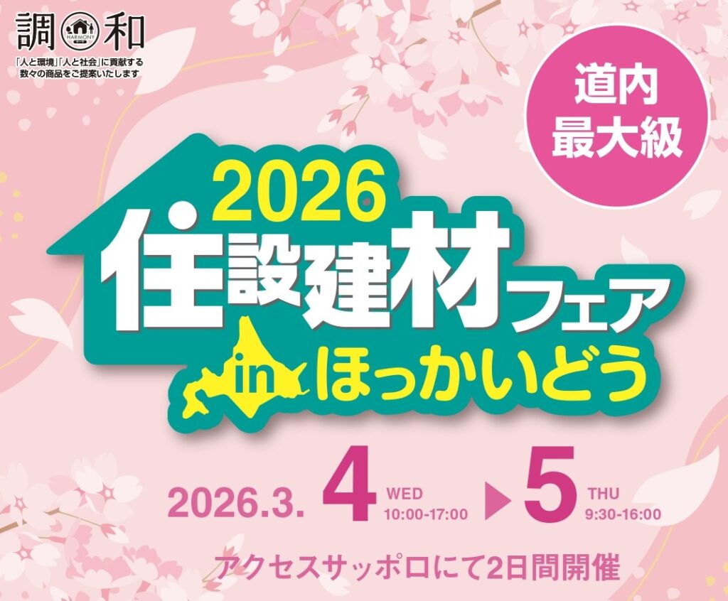 来る3月4日~5日、「2026住設建材フェアinほっかいどう」(場所:アクセスサッポロ)の展示会に